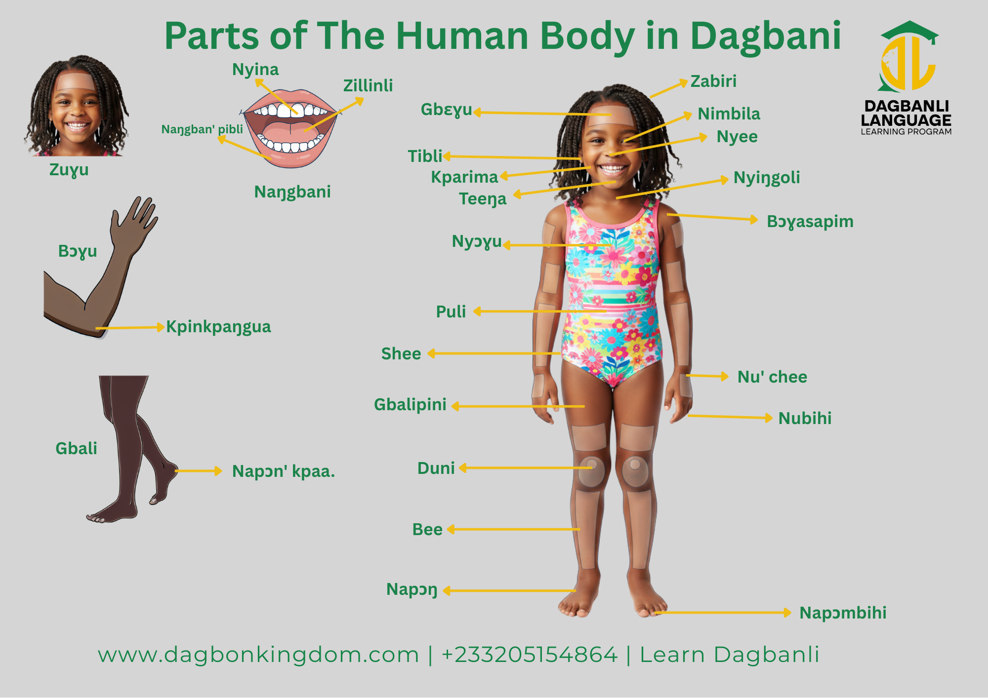 Parts of The Human Body Poster In Dagbani